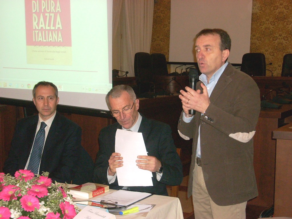 La Sala Consiliare del Palazzo Comunale ha ospitato la toccante presentazione del libro “Di pura razza italiana. L’Italia “ariana” di fronte alle leggi razziali”, scritto da Mario AvaglianoMarco Palmieri. Oltre alle Autorità militari, civili e religiose hanno assistito all’evento le classi terminali dell’Istituto Superiore “L. Einaudi”, del Liceo Scientifico “L. Da Vinci”, del Liceo Classico “V. Simoncelli”, dell’IPSIA “G. Nicolucci”.