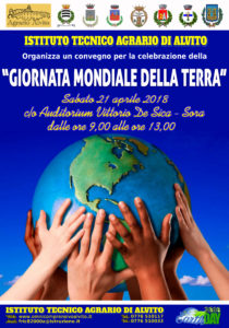 Anche la Città di Sora si prepara a celebrare questa significativa ricorrenza. Sabato 21 aprile 2018, dalle ore 9.00 alle ore 13.00, presso l’Auditorium “Vittorio De Sica” si terrà il convegno “Giornata Mondiale della Terra”. L’evento, promosso dall’Istituto Tecnico Agrario di Alvito, è stato patrocinato dal Comune di Sora.