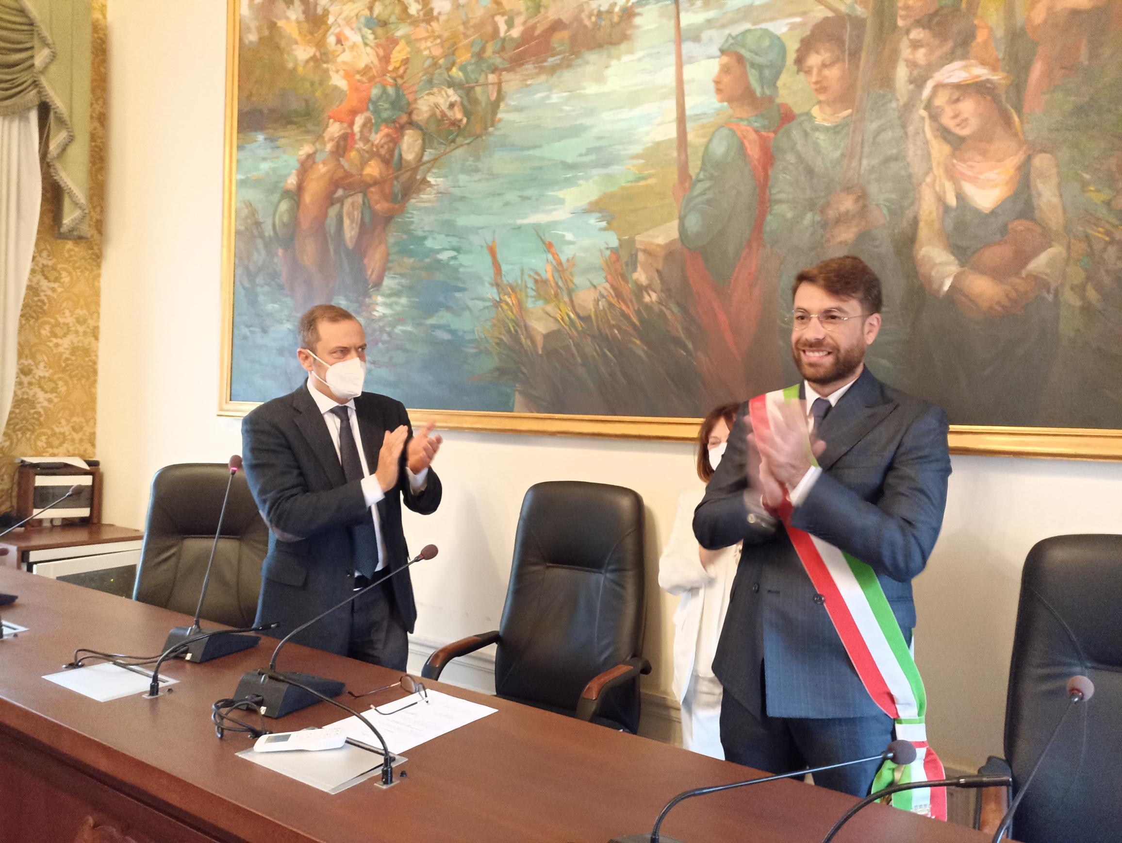 Il Sindaco Luca Di Stefano indossa la fascia tricolore, celebrato l’avvicendamento alla guida della Città