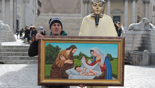Anche Sora è protagonista della “Mostra dei 100 presepi” a Roma. I visitatori dell’esposizione capitolina, giunta alla 38° edizione, possono ammirare l’opera “La Sacra Famiglia” realizzata dall’artista sorano Massimo Di Ruscio. Si tratta di un dipinto ad olio su tela, ispirato alla Natività.