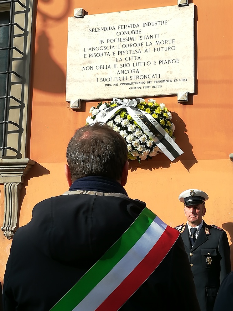 Si sono svolte, stamani, presso il Palazzo comunale di Sora, le celebrazioni del 103° anniversario del terremoto della Marsica. Il Sindaco Roberto De Donatis, insieme al Presidente del Consiglio Antonio Lecce e a numerosi membri dell’Amministrazione, ha apposto una corona di fiori alla lapide in ricordo delle vittime del sisma.